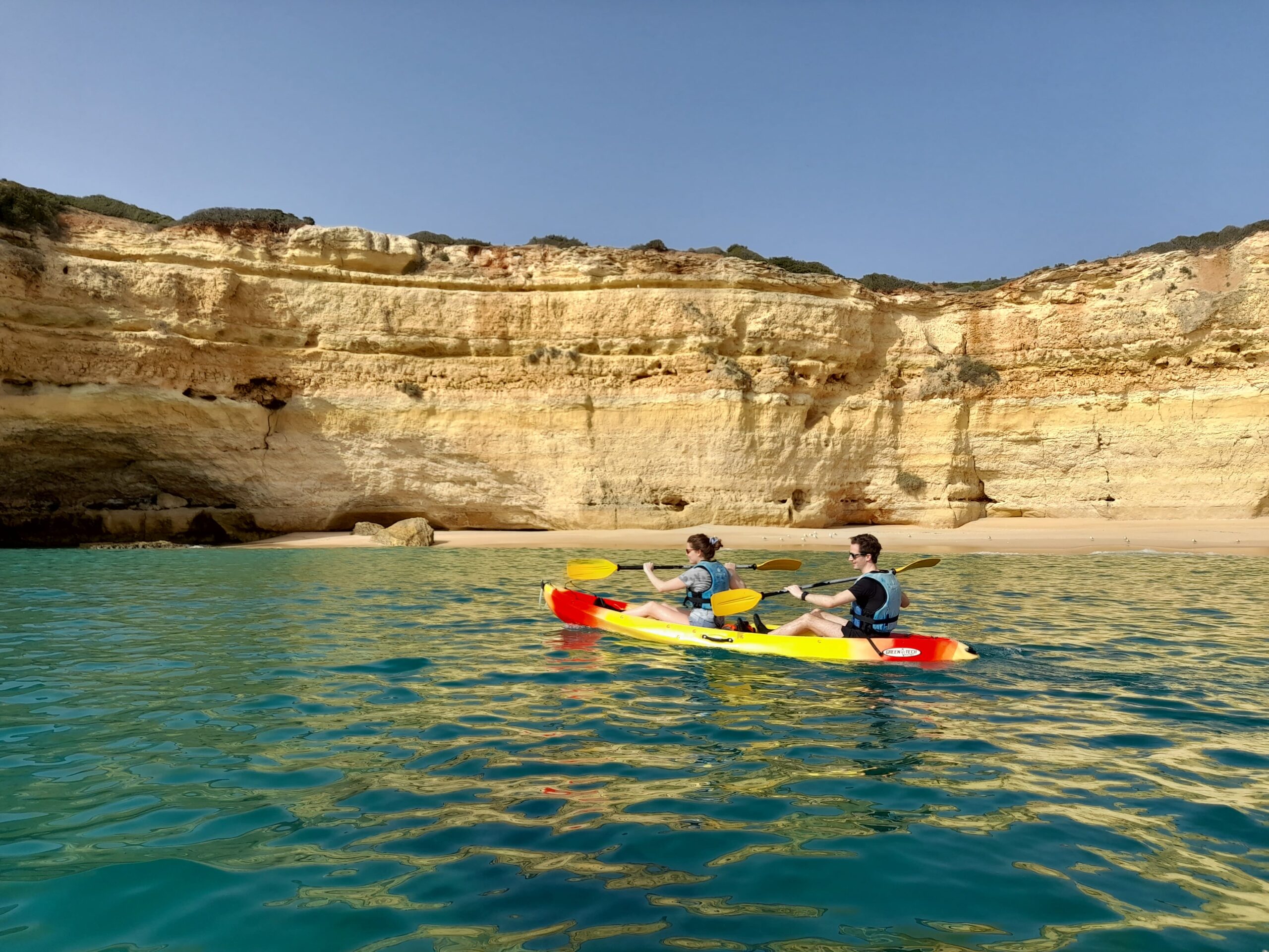 Oferecemos passeios de caiaque em Benagil, ou você pode alugar um caiaque ou prancha de remo.Com o nosso passeio e um guia experiente iremos mostrar as mais belas grutas. Contaremos a história das grutas e lugares que visitará.